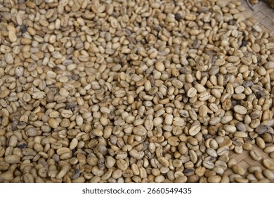 Hạt sau khi rửa được phơi nắng tự nhiên hoặc sấy đến độ ẩm mục tiêu khoảng 11–12%. Thời gian phơi tùy thời tiết, thường 7–14 ngày. Sau khi đủ khô, người ta tách vỏ cứng (parchment) để lấy nhân xanh.